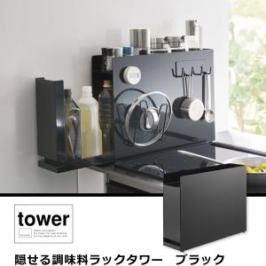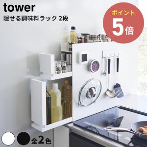 《全2色》Tower 隠せる調味料ラック タワー 2段 調味料 収納 隠す ラック 2段 油跳ね 防止 大容量 光沢 お手入れ オープン 調味料ストッカータワー マグネット◆