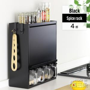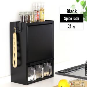 スパイスラック 調味料ラック 隠せる 扉付き スリム ポット4杯 おしゃれ マグネット 調味料 収納 ラック 薄型 3段 40cm 日本製 ブラック 黒 完成品 川口工器
