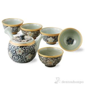 急須茶器揃 唐草桔梗 湯呑5客・急須1個セット ( あすつく 退職祝い 定年 茶器セット 急須 湯呑み 日本茶 中国茶 波佐見焼 結婚 出産 内祝い 引き出物 金婚式 )