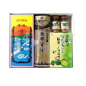 阿波三昧910M 鳴門わかめ すだち七味 すだち生酢しょうゆセット 祖谷そば ギフトセット
