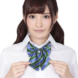 きゅん可愛スクールリボン ブルー&グリーンストライプ コスプレ小物 スクール 制服 アクセサリー アニメ アイドル ハロウィン 仮装 大人 コスチューム 衣装