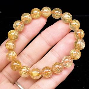 【商品動画ある】PROME 天然石【一点物】厳選グレード・宝石質・高品質・タイチンルチル・ゴールデンルチルクォーツ・ブラジル産・ブレスレット・v74640