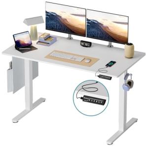 Bestier 電動 昇降式デスク 幅120cm USB充電可能 スタンディングデスク高さメモリー機能 障害物検知 静音 収納フック・収納ボックス付き