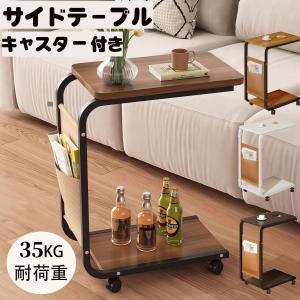 【省スペース】サイドテーブル キャスター付き テーブル ナイトテーブル 収納ポケット 軽量 静音 省スペース 耐水 ミニテーブル リビング コーヒーテーブル