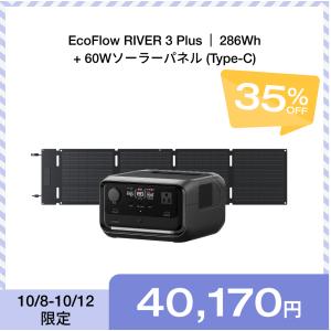 EcoFlow ポータブル電源 ソーラーパネル セット RIVER 3 Plus(286)+60W(Type-c) 太陽光発電 太陽光パネル 家庭用 蓄電池 ソーラー 車中泊 節電 停電 エコフロー