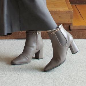 ショートブーツ サイドゴア レディース 2WAY メタルパーツ付ベルト 太ヒール メタルパーツ アミアミ