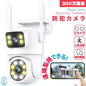 防犯カメラ 屋外 家庭用 wifi 有線 2カメラ デュアルカメラ 屋外カメラ パン チルト ナイトカラービジョン 暗視カメラ スピーカー 音声 録音