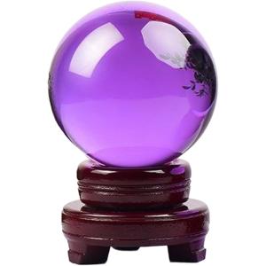 水晶玉 風水 置物 台座付き 浄化 玄関 リビング ギフト (パープル, 直径8cm)