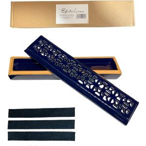お香立て 風水 金運 横置き ふた付き 安全 おしゃれ シンプル インテリア 飛び散らない 香炉 香皿 灰が飛ばない 陶器(ネイビー)