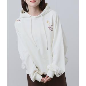 パーカー 「NAVY」飛び刺繍 コットン ミニ裏毛 ラグラン プルオーバーパーカー レディース