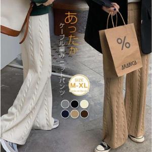 ワイドパンツ レディース ニットパンツ 秋 冬 ニット ロングパンツ ケーブル編み ロング丈 ガウチョ パンツ 秋冬 パンツ 無地 きれいめ