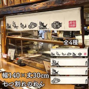のれん 横幕 横長 暖簾 魚 140cm幅 30cm丈 7つ割 カウンター 店頭用 店先 カツオ まぐろ カニ 店舗用(受注生産 95071 95072 95073 95074)