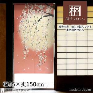 のれん 桜 さくら 和風 モダン 暖簾 特選和柄 85cm幅 150cm丈 間仕切りカーテン しだれ桜と月 ピンク(受注生産95137)
