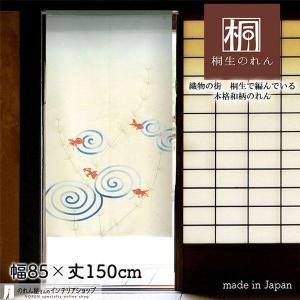 のれん 和風 モダン 暖簾 特選和柄 85cm幅 150cm丈 間仕切りカーテン 波紋金魚 白 水色(受注生産 95142)