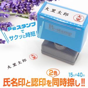 スタンプ 台不要 氏名 認印 店舗 薬局 飲食店 事務 ゴム印 はんこ ハンコ 領収書 領収証 請求書 納品書 書類 便利 時短 2色 同時 15mm×40mm Peスタンプ