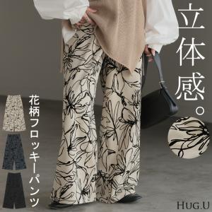 パンツ ワイド 花柄 レディース ワイドパンツ フロッキー 太い ガウチョ ガウチョパンツ ボトムス ロング