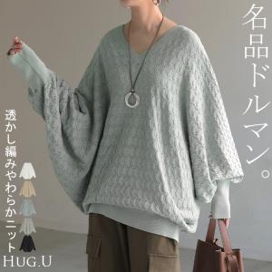ニット ドルマン 透かし編み トップス レディース シアー Vネック セーター ドルマンスリーブ ドルマンセーター