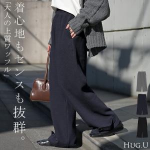 パンツ ワイド ワッフル レディース ワイドパンツ ロング ロングパンツ カーブパンツ 体型カバー ボトムス