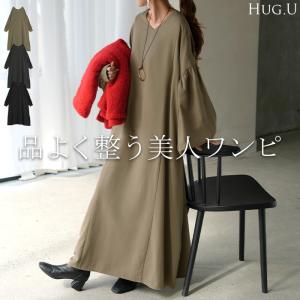 ワンピース ロング パフスリーブ Vネック レディース ワンピ ロングワンピース ロングワンピ Aライン マキシ マキシワンピース ボリュームスリーブ
