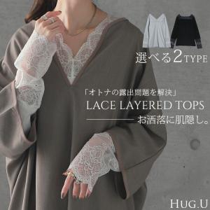 トップス レディース インナー レース 長袖 レイヤード カットソー Vネック きれいめ