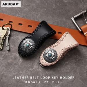 本革 ベルトループキーホルダー キーホルダー キーリング 牛革 レザー 革 革小物 編み込み コンチョ 鍵 キー ヌメ おしゃれ かっこいい アルバ aruba bk3313k4