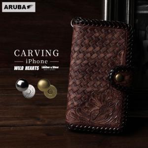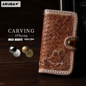 ワイルドハーツ スマホケース 手帳型 iPhone カービング マグネット アイフォン ケース 本革 レザー ヌメ革 編み込み バスケット アルバ WILD HEARTS ip2960r25
