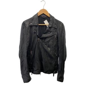 Attachment◆ホースレザー/ダブルライダースジャケット/1/馬革/BLK/無地