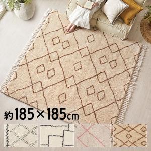 ラグ マット 約 185×185cm ベニオワレン 風 滑り止め 付 ホット カーペット 床暖房 可 可 オールシーズン モロッカン おしゃれ 北欧 雑貨 アジアン b2e-