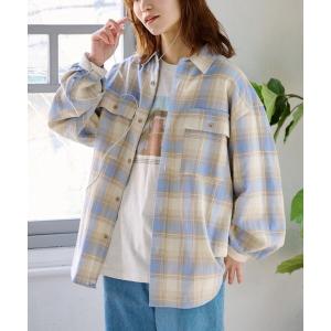 シャツ 「ユニセックス」パナマ織り/袖配色/チェックシャツジャケット メンズ レディース