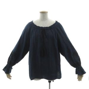 ドゥクラッセ DoCLASSE ブラウス ドロストネック リボン タッセル 刺繍 長袖 キャンディースリーブ リネン100% ネイビー 紺 ブラック 黒 9
