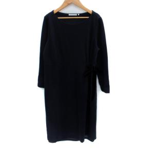 ドゥクラッセ DoCLASSE ワンピース ミモレ丈 長袖 ラウンドネック リボン 紺 ネイビー /SM16 レディース