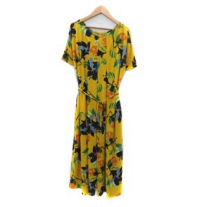 ドゥクラッセ DoCLASSE ワンピース ロング丈 マキシ丈 半袖 花柄 S/M マルチカラー 黄色 イエロー /YK38 レディース