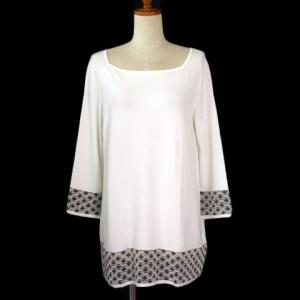 ドゥクラッセ DoCLASSE カットソー チュニック ニット スクエアネック 刺繍 XL 白 ホワイト レディース