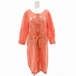 ドゥクラッセ DoCLASSE リネンワンピース 長袖 ひざ丈 カットアウト リボン 13 オレンジ /GV レディース