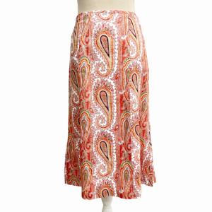 ドゥクラッセ DoCLASSE 美品 ひざ丈 スカート リネン 総柄 ペイズリー 赤 レッド 7 約S レディース