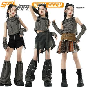 チェック柄 ホワイト グレー 黒 韓国k-pop jazz デニム短パン デニムスカート ショートトップ へそ出し 女の子 チア チアガール スカート 半ズボン セットアップ