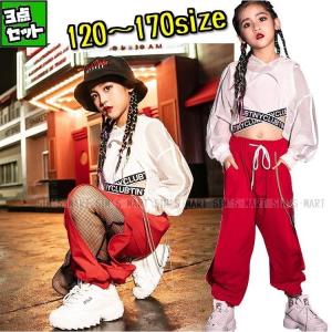 キッズ ヒップホップ ファッション ダンス衣装 派手 K-POP 韓国 セットアップ 白 赤