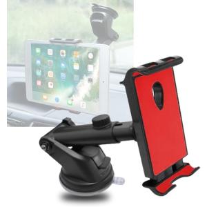 タブレット車載ホルダー 強力吸盤式 ダッシュボード/フロントガラス対応 (レッド)