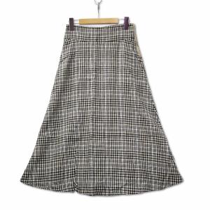 ミラオーウェン Mila Owen フレンチリネン チェック柄 ミモレ Aライン スカート ベージュ×ブラック 0 (約S) レディース