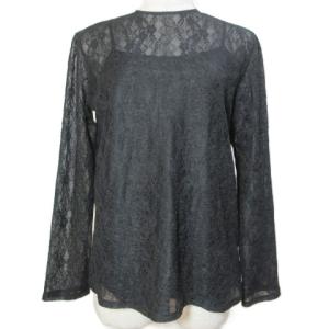 ミラオーウェン 美品 17SS キャミソール付レースブラウス 09WFT171157 カットソー チュール 長袖 プルオーバー フリーサイズ 黒