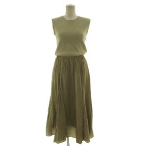 ミラオーウェン Mila Owen ノースリーブニット ワッシャースカートドッキングワンピ ロング丈 ウエストゴム カーキ 0 レディース