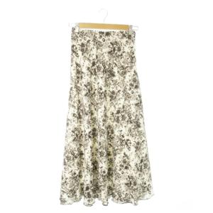 未使用品 ミラオーウェン Mila Owen シフォンジョーゼットナロースカート ロング 花柄 総柄 ウエストゴム 0 S 白 アイボリー