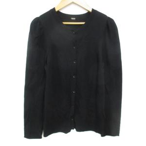 ミラオーウェン Mila Owen ニットカーディガン ミドル丈 ラウンドネック ウール 無地 0 黒 ブラック /FF21 レディース