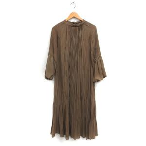 ミラオーウェン Mila Owen ギャザー ワンピース ロング丈 7分袖 バックリボン 無地 1 モカ /FT26 レディース