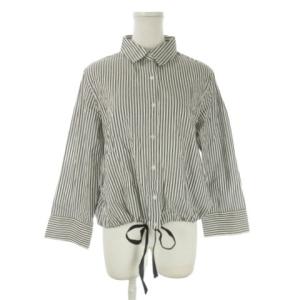 ミラオーウェン Mila Owen シャツ ブラウス 0 白 ホワイト グレー ストライプ柄 長袖 ドローストリング /AO26 ■GY58 レディース