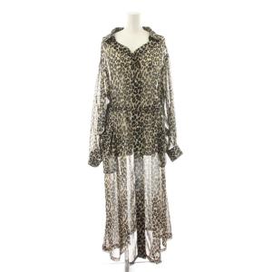 ミラオーウェン シャツワンピース 1 ベージュ 黒 ブラック レオパード柄 ヒョウ柄 長袖 シアー ロング マキシ ベルト付き