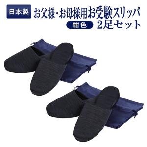 お受験 スリッパ ペアスリッパ グログラン製 フォーマル お受験スリッパセット 紺 室内用 収納袋付 百貨店仕様 日本製 メイドイン山形1855
