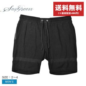 送料無料 シーグリーン ハーフパンツ メンズ パイル ボーダー ショーツ SEAGREEN MSEA22S5107-S 黒 パンツ ボトムス ズボン 無地