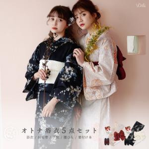 レディース 浴衣 セット 簡単(ゆかた・しわ兵児帯・下駄・着付け本・腰ひも)綿 レトロ 黒 赤 白 大人 上品 古典 花柄 10代 20代 30代 2025年