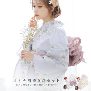 浴衣 レディース セット 簡単(ゆかた・しわ兵児帯・下駄・着付け本・腰ひも)綿 ピンク 紫 白 10代 20代 30代 ピンク ガーリー かわいい 可愛い 大人 2025年